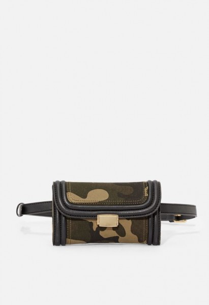 Material: PVC/Faux Leather Size: 7”L x 4”H x 1”D Hardware color: Gold Belt Strap Measurements : 31" - 53" Pockets: N/A Closure: Push Lock